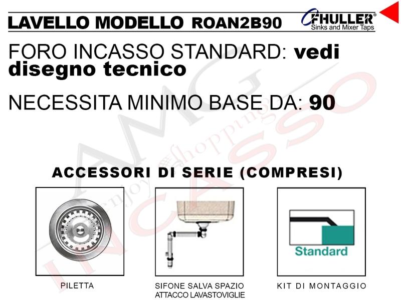 Lavello compreso di: Piletta, Sifone attacco lavastoviglie, Agganci di Fissaggio.