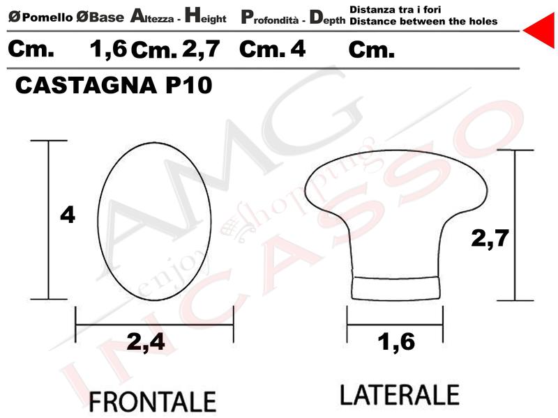 Dimensioni Prodotti in cm (L x P x H x Ø x PN)2.4 X 4.0 X 2.7 X 0.0 X 0.0
