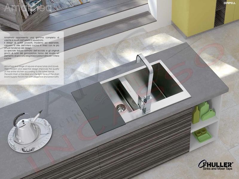 Ripensare il lavello della cucina trasformandolo in un prodotto originale ed esclusivo, in grado di combinare eleganza e design moderno con l’uso quotidiano ed una ottimale facilità di pulizia ed igiene. Questo è l’approccio della Apell al mercato e allo sviluppo dei propri Prodotti e questa è la ragione per la quale milioni di Consumatori ci scelgono in tutto il Mondo. Eleganza e Design sono assicurati dallo sviluppo e dalla realizzazione rigorosamente Made in Italy.