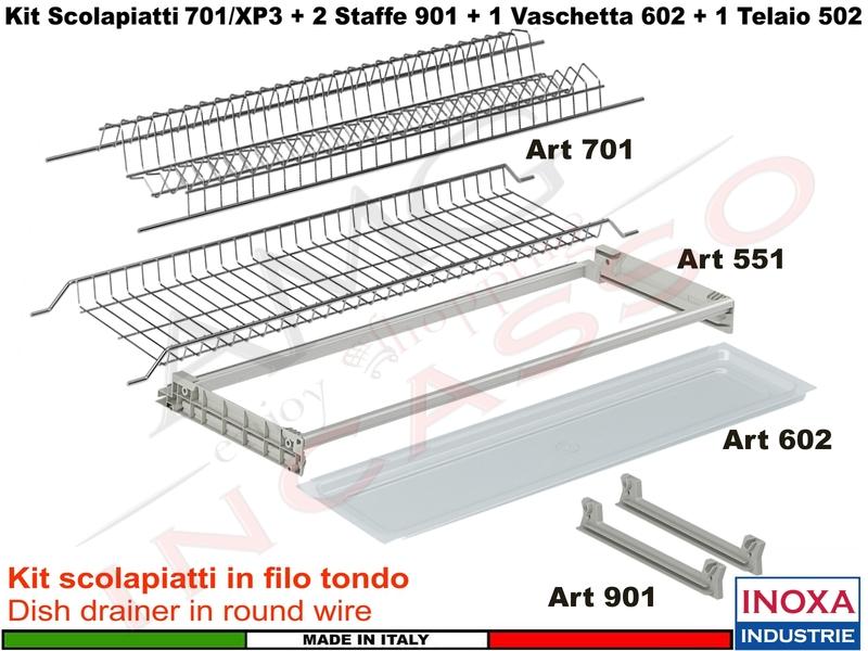 | Composizione | 701 Griglia Kit Piatti e Bicchieri + 2 Staffe 901 + 1 Vaschetta 602 + 1 Telaio 551 |