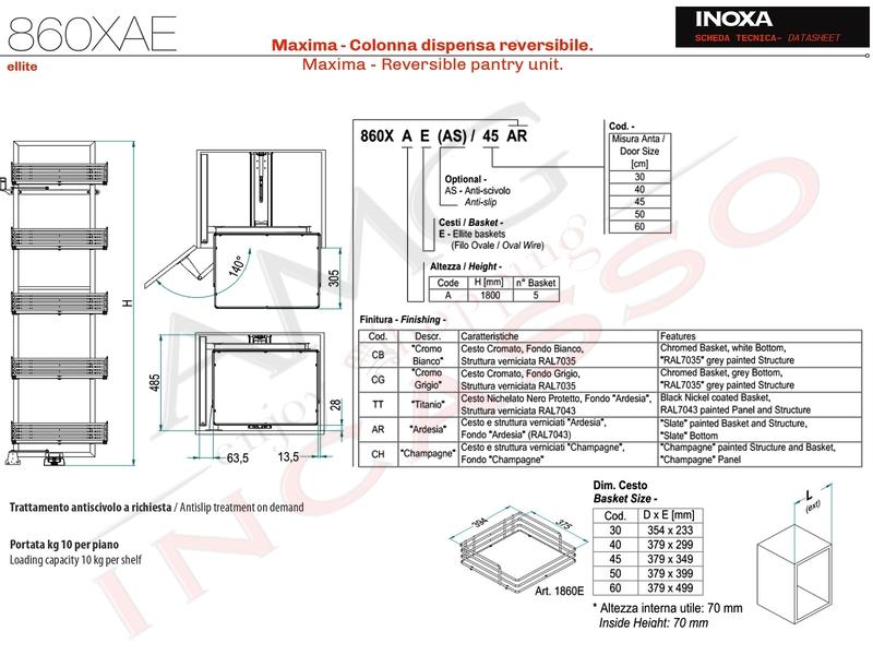 | Composizione | 1 Telaio Meccanismo 860XA + 5 CESTI 1860EKIT |