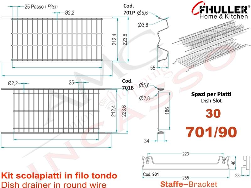 • Kit Scolapiatti 90 701/90XP3 + 2 Staffe 901 + 1 Vaschetta 602 + 1 Telaio 502