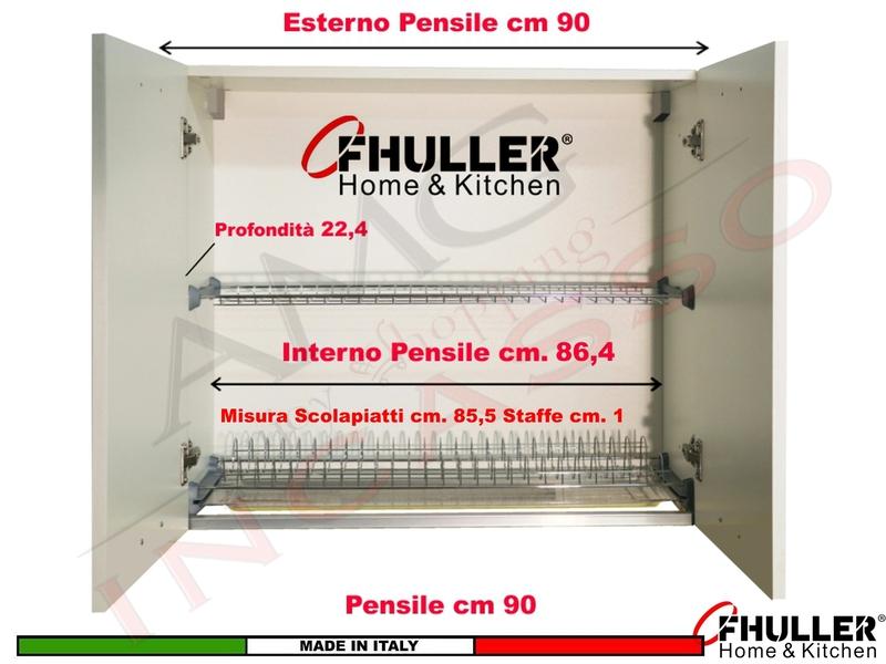 • FHULLER Scolapiatti da Incasso Filo Acciaio Pensile 90 Interno 85,6 + 4 Staffe + Scatola