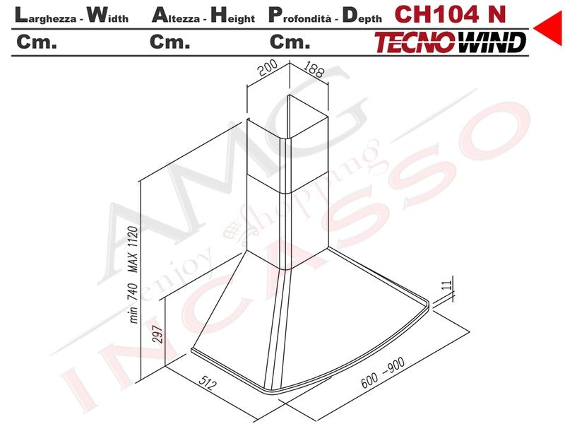 | Descrizione Prodotto | CARATTERISTICHE Cappa Modello CH104N Installazione Parete Con Camino, Comando Meccanico, Illuminazione LED E14 2,5 W, Pannello Alluminio, Motore 265 W) Ø Uscita aria 150 mm, CLASSE ENERGETICA A, Velocità 3 Portata m3/h 600, Pressione Pa 530, Acustica dBA 61 |