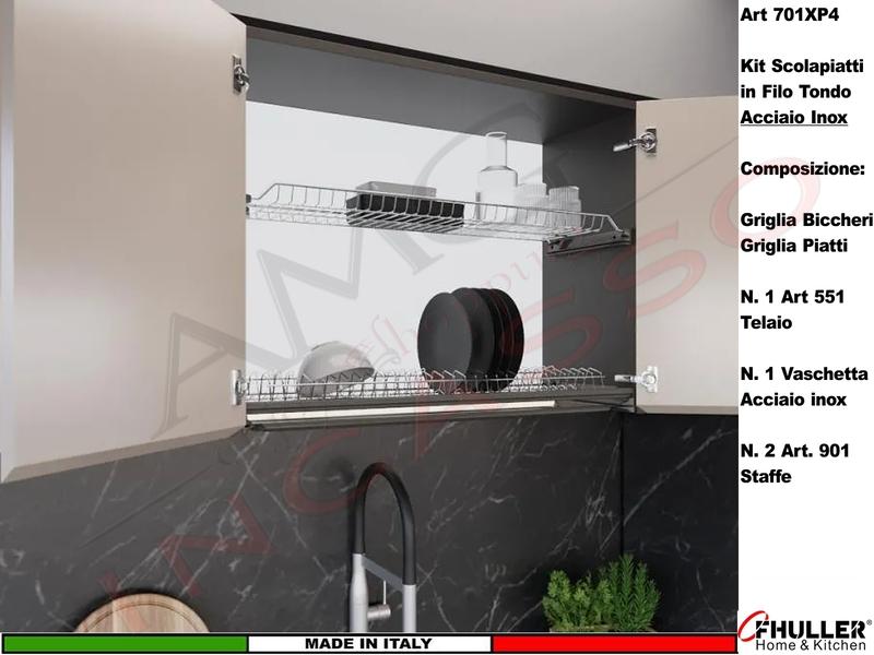 | Composizione | 701 Griglia Kit Piatti e Bicchieri + 2 Staffe 901 + 1 Vaschetta 601 Acciaio + 1 Telaio 551 |