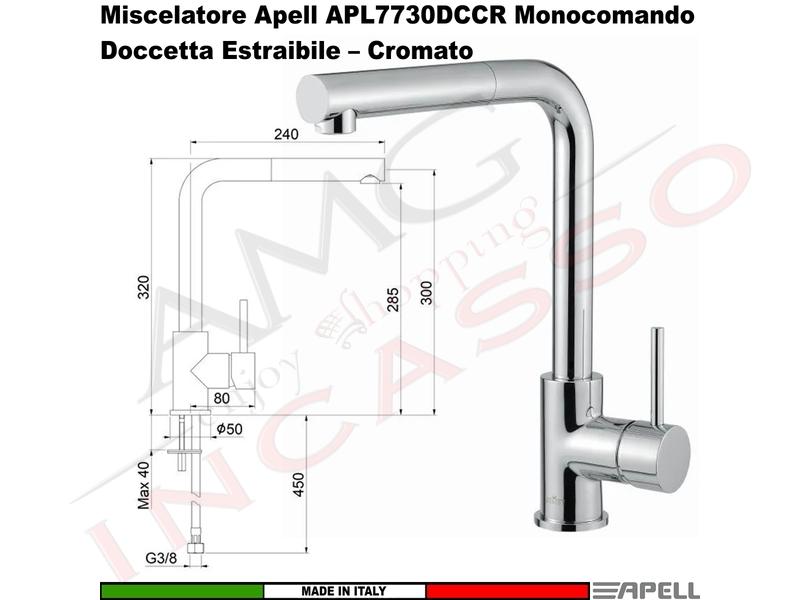 | Dimensione foro su Lavello Cm.: | Ø 3,5 |