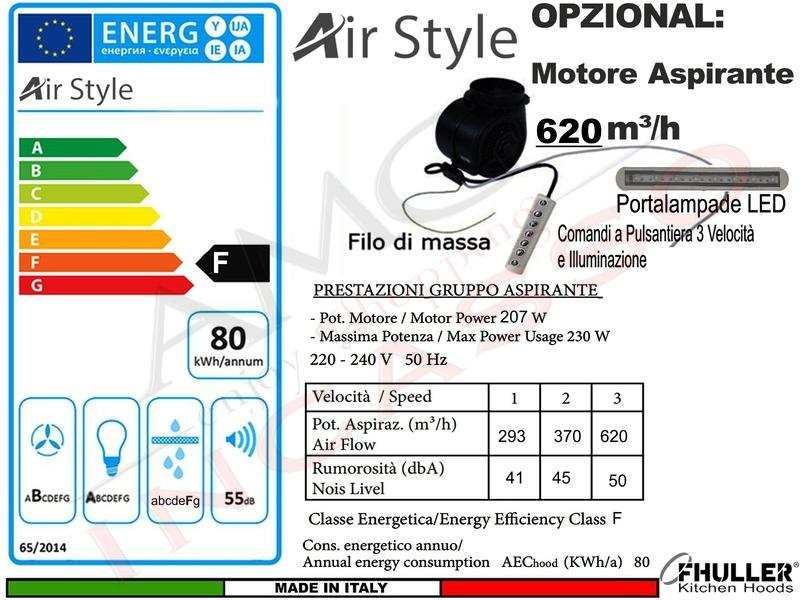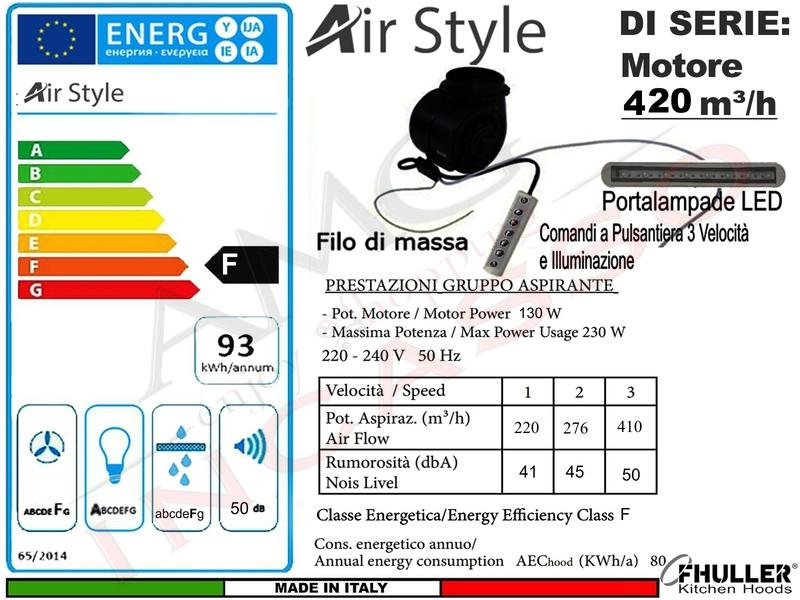 Le Cappe FHULLER - AIR STYLE sono Conformi alle direttive comunitarie e dotale di marcatura CE, ogni Singola Cappa e accompagnata da un rapporto di collaudo attestante il risultato delle prove