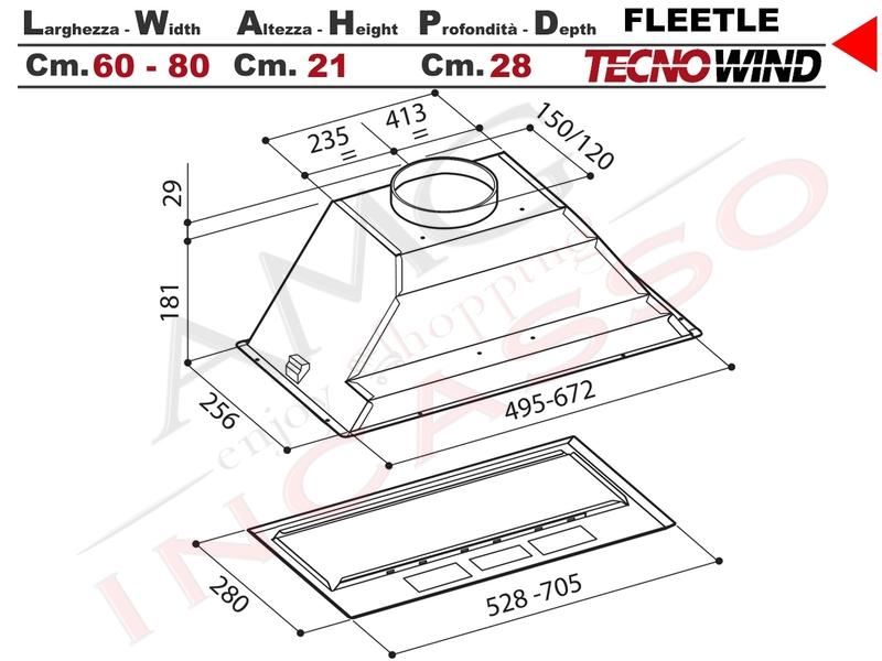 | Utilizzo | Cappa ad Incasso Dentro il pensile |